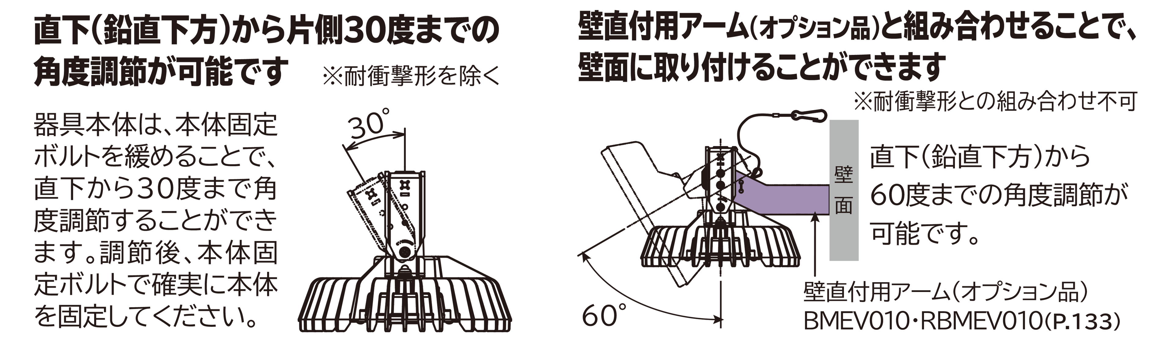 ボルト2点止めで天井直付けにも対応します。