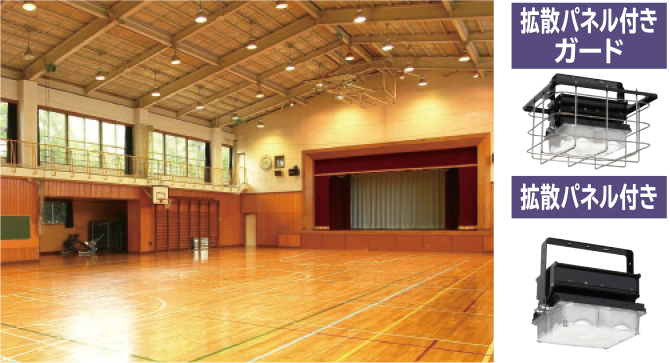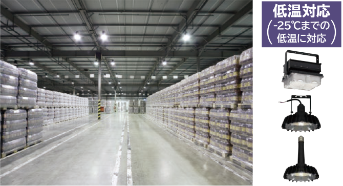 工場や倉庫、体育館などの大型施設は、大光量の明るさと大幅な省エネが求められます。日立の高天井用LEDは、多種多様な天井構造や厳しい設置条件にも対応する豊富なラインアップ。選べる明るさと取り付け方法で、新設から既存設備を生かしたリニューアルまで、幅広く省エネに貢献します。